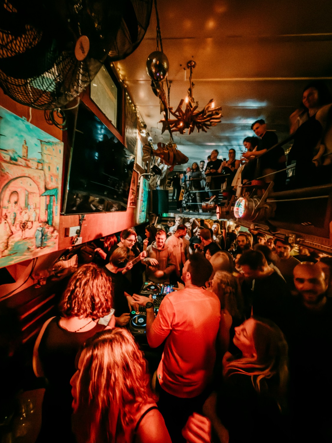 While we are very much a walk-on space offering free entry 99% of the time, we hire out sections of the vessel for live music and events. Our most popular option, the lower deck, may be privately hired for events until 1am. It comfortably accommodates 80, although you may invite more as access is available to the whole boat. It offers high ceilings & fantastic views of Parliament while giving you control of the music. Other options include tables for groups, the outdoor West Deck or Stage & whole boat hire. Prices range from a ยฃ30 deposit-ยฃ285 (for the evening) for tables & lower deck hire to a ยฃ5.5k-15k minimum spend for a combination of an indoor & outdoor deck or whole boat hire. We offer free hire for charities & live music (subject to tโs & cโs).